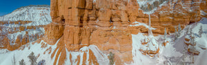 Winter melt-water forms a towering frozen waterfall within a desert amphitheater in the southern Utah desert.