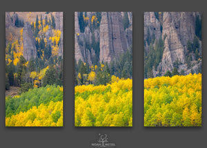Sunset graces the very top of the aspen forest canopy during peak foliage in Routt County near Steamboat Springs Colorado.