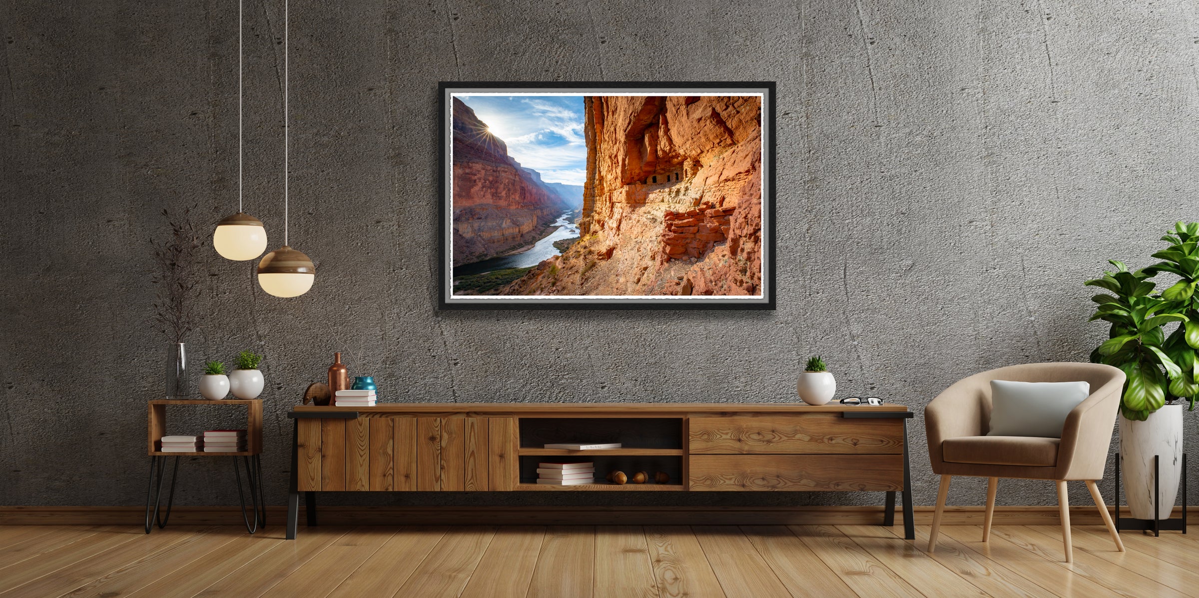 With the addition of a 3/4" white border with torn deckled edge, you can showcase your framed print with even more elegance. This print style must be framed differently to showcase the unique edge. Either pressed in between two sheets of glass in a frame, or utilizing our favorite method, a pedestal mount, allowing the print to appear like it's floating behind the glass within the frame.